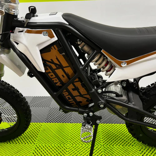 Not content with the performance from the over-boosted 1.6 kw EBOX1, we decided to tweak the chassis and install an over-boosted 2 kw rated powertrain that peaks at over 3 kw! (As tested and reviewed by Suronster on YouTube). These modifications catapult the EBOX2 into electric pit bike class leading territory.